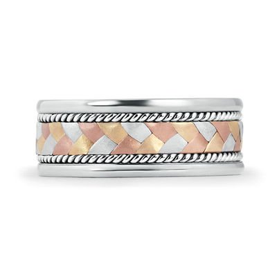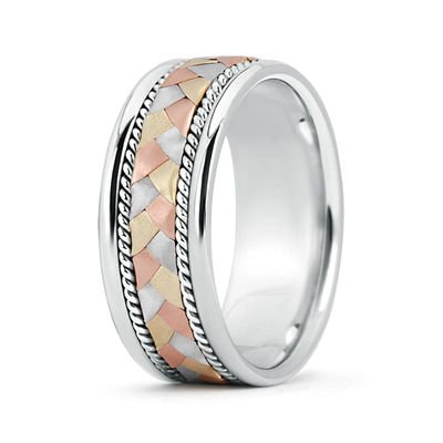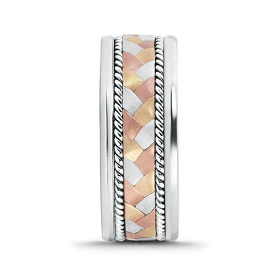 14K Tri Color White Rose Pink Yellow Gold Hand Braided Wedding Ring Band 8.5mm