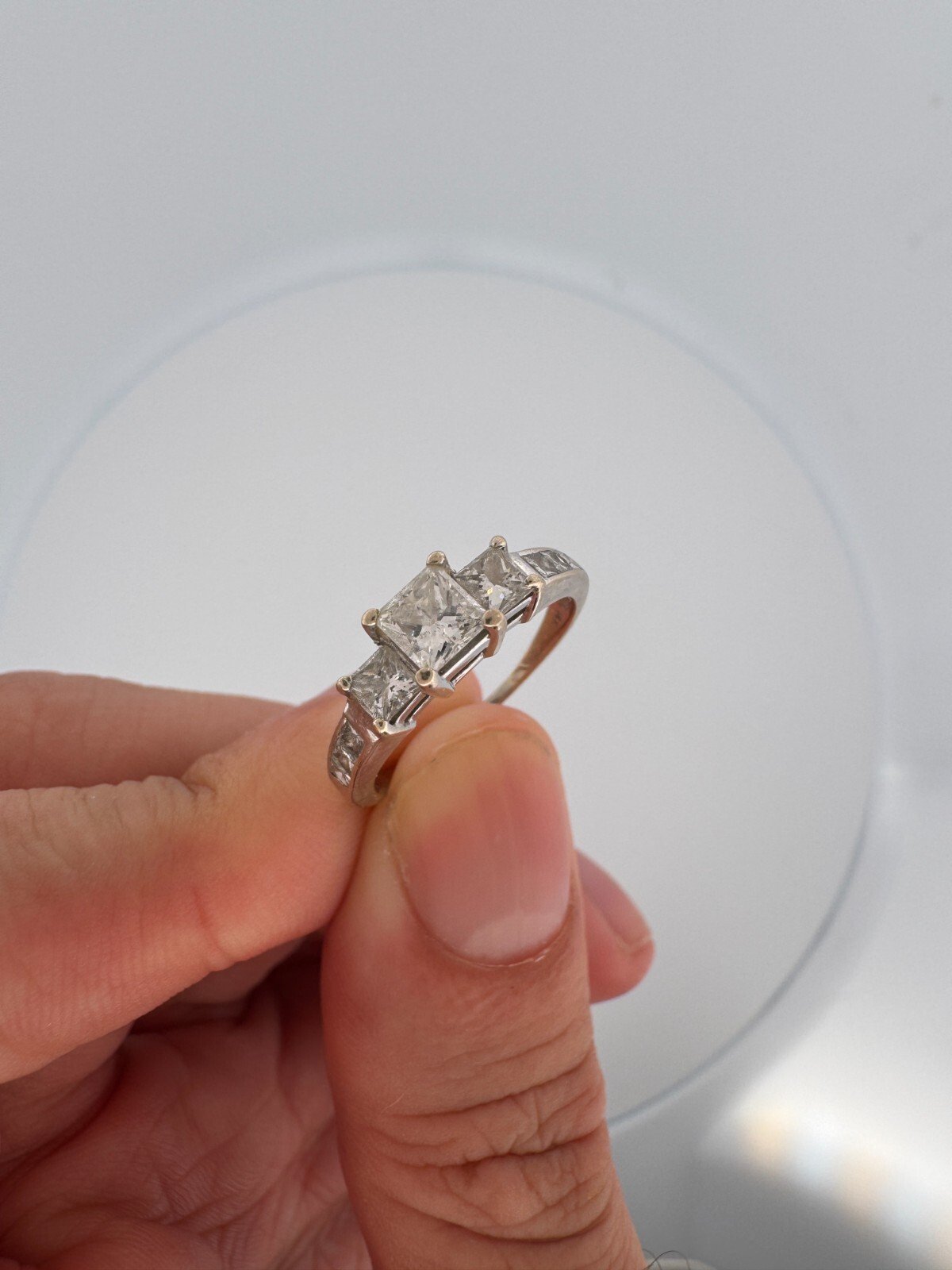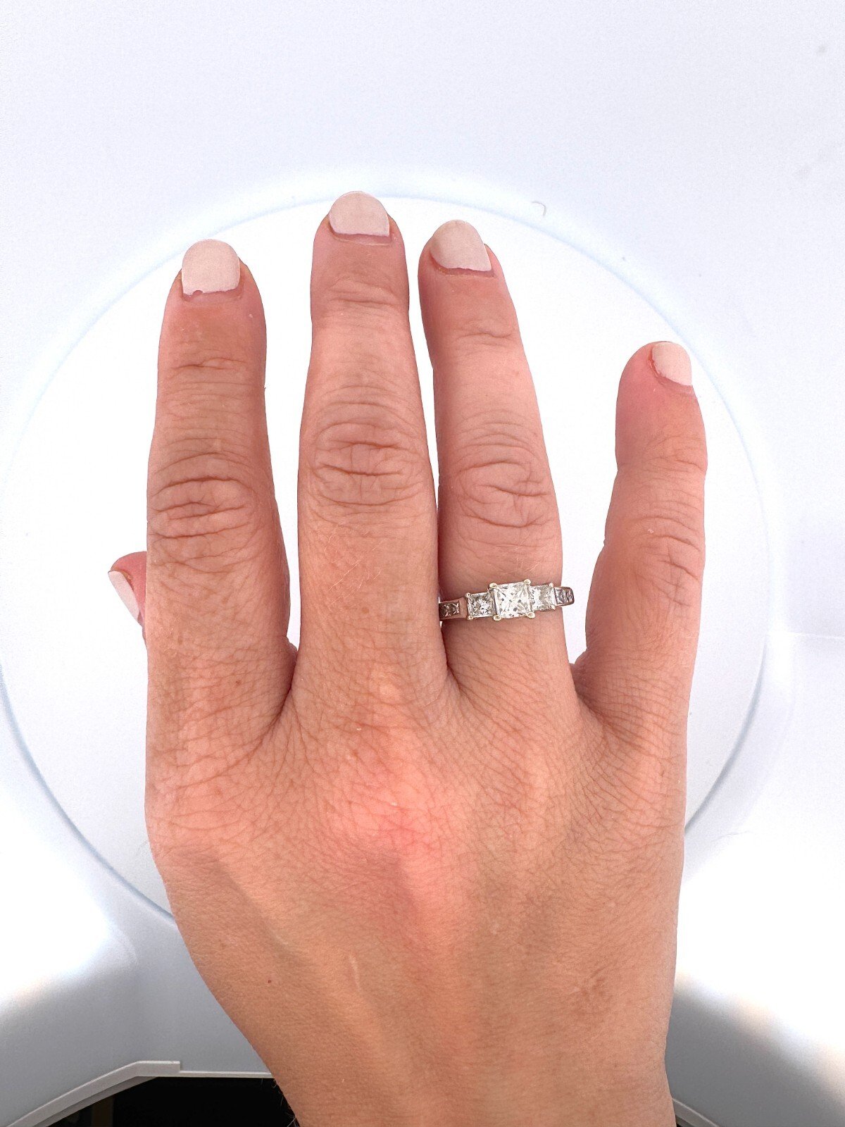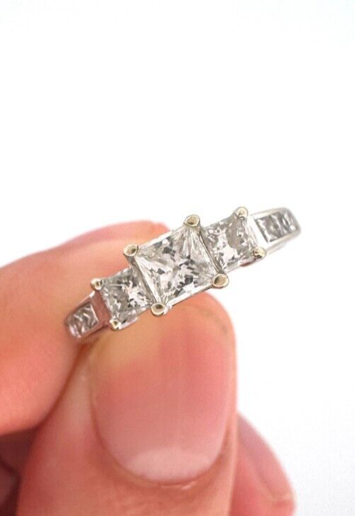 14Kt White Gold 1.10 CARAT TW Princess Diamond Engagement Ring SZ 6.75 PUR038