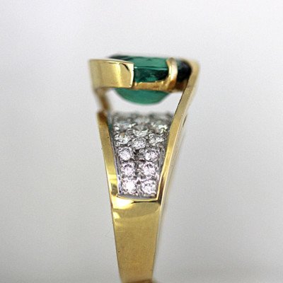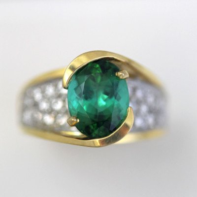 Stunning 3.07 Carat Oval Green Tourmaline . Set in a hand designed ring with round diamonds