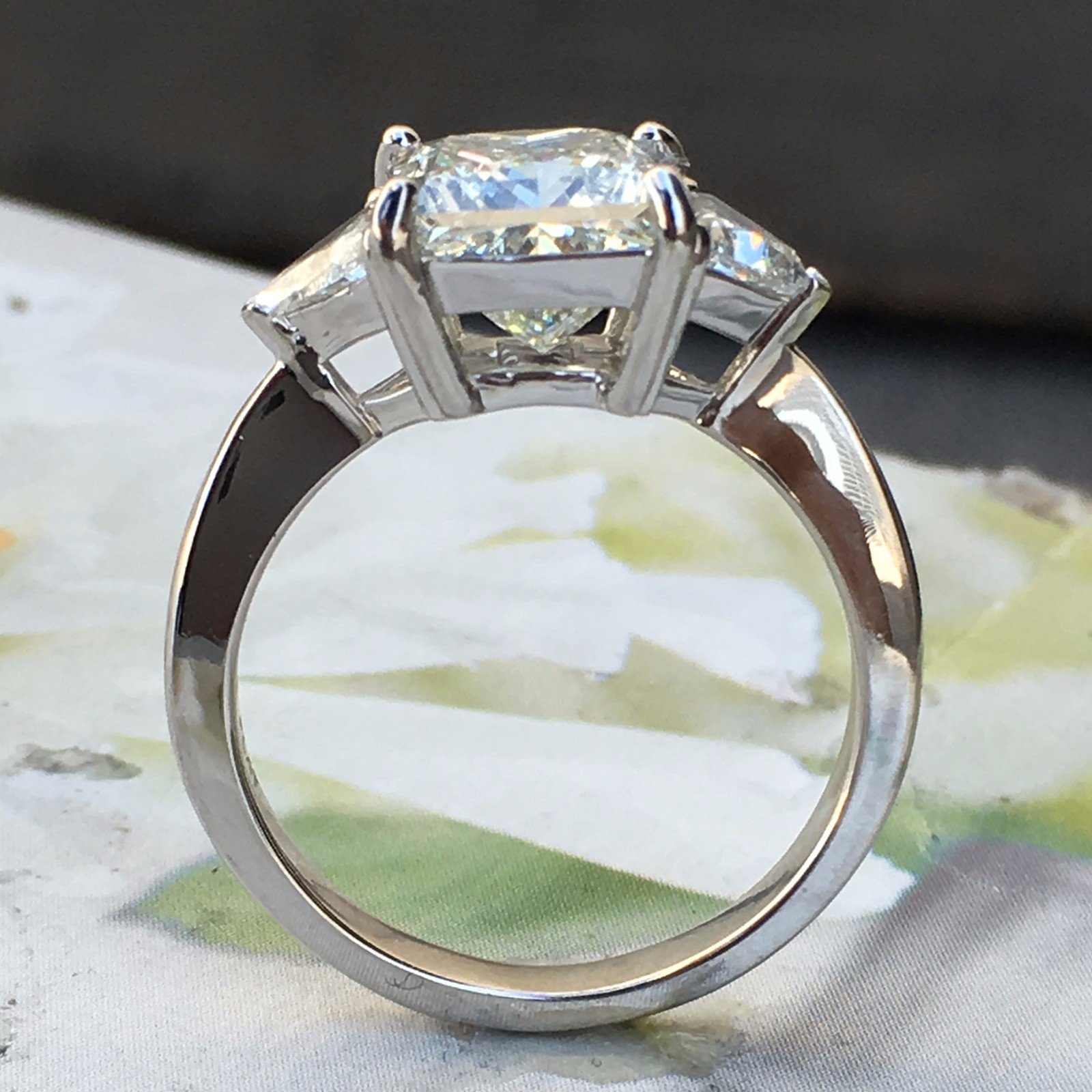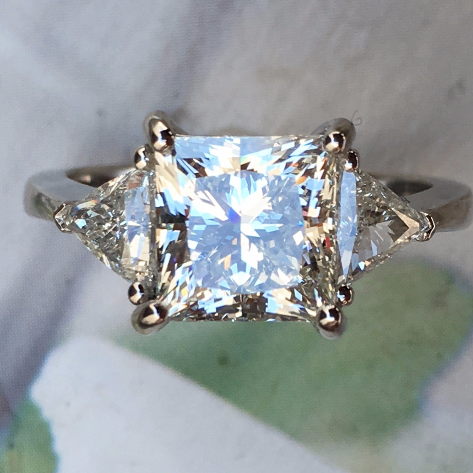 Price shown is for diamond with the ring in your size, if you want to use your own diamond or a different one to change the price please message me your budget. 4.6 Carat + Princess Cut Diamond Engagement Ring Set in Platinum Center Stone Diamond Details :