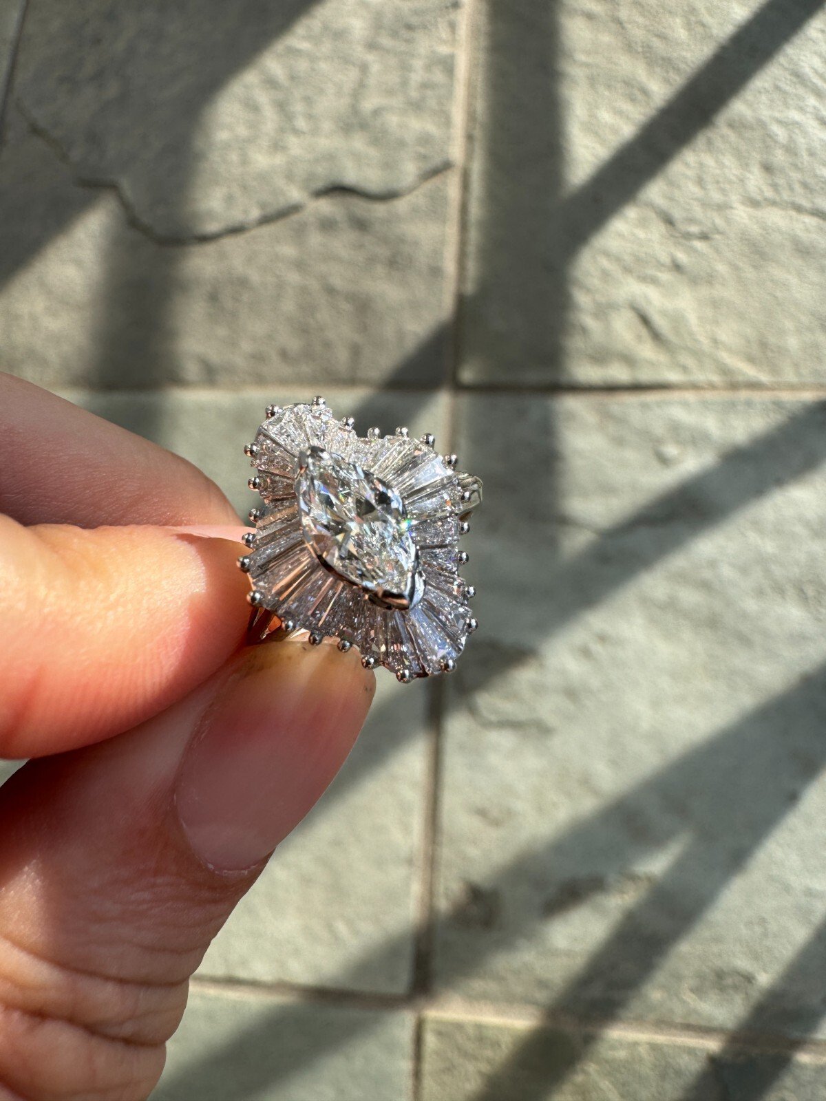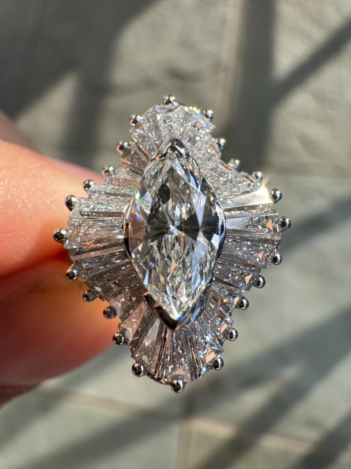 Amazing Ballerina Diamond & 600-750 Platinum Ring Marquise Center Stone