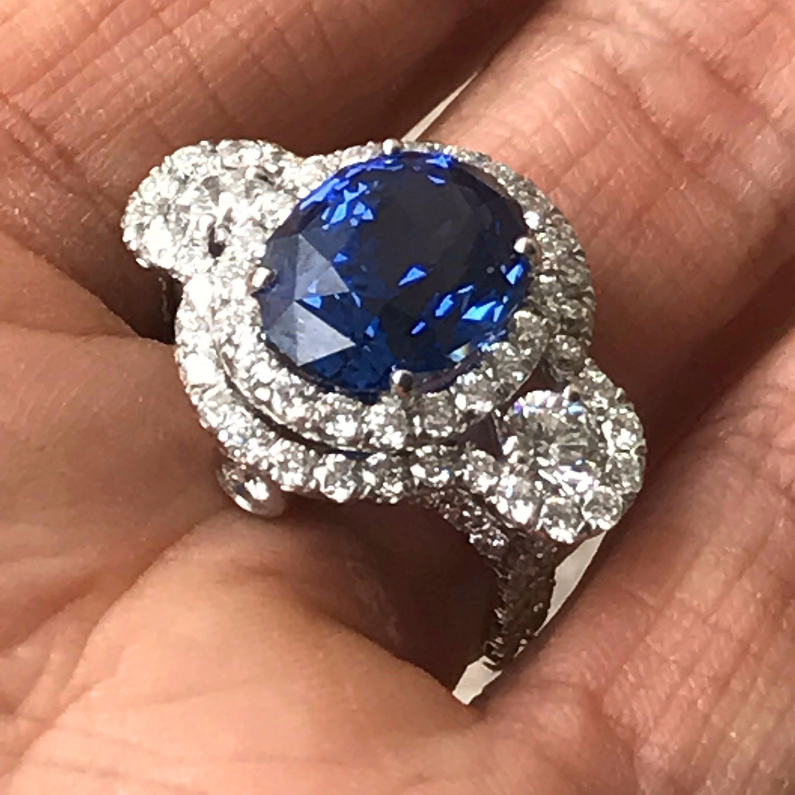 Big Oval Ceylon Sapphire Engagement Ring – 11.80 + Carat TW – 18k white gold