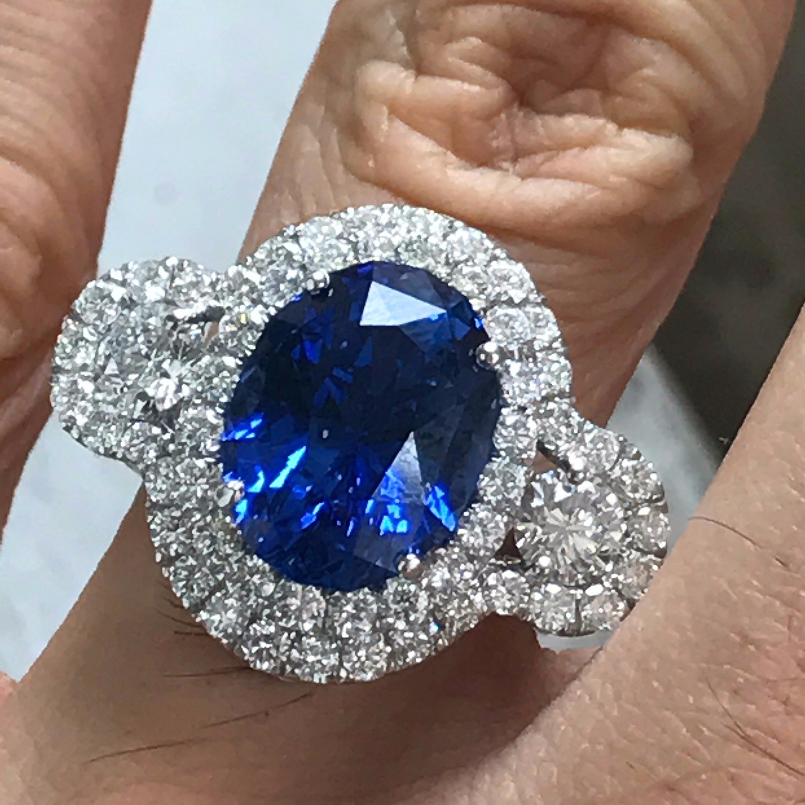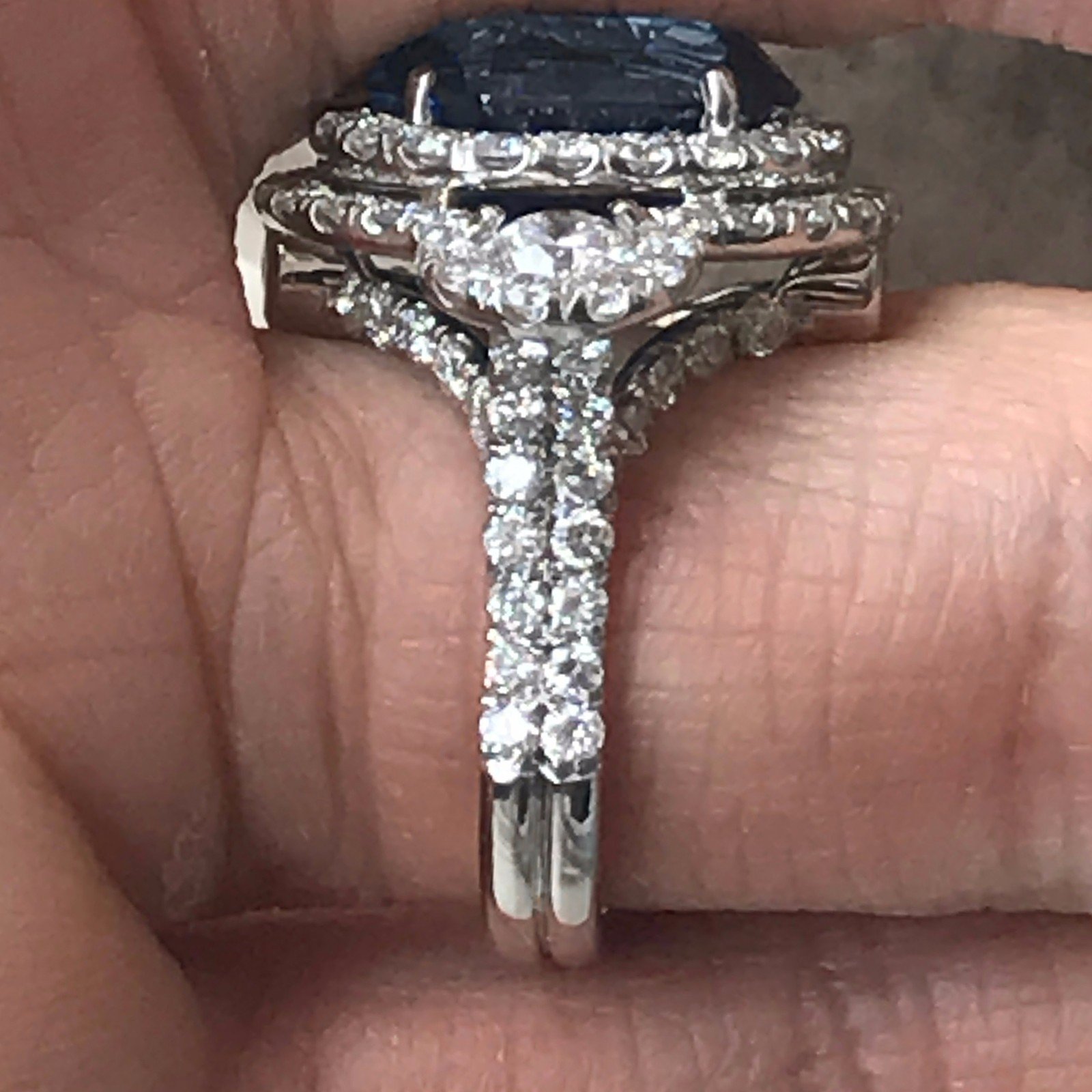 Big Oval Ceylon Sapphire Engagement Ring – 11.80 + Carat TW Set in 18k White Gold