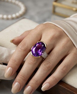 • Main Stone: Natural Oval Cut Amethyst (Deep, rich purple saturation)