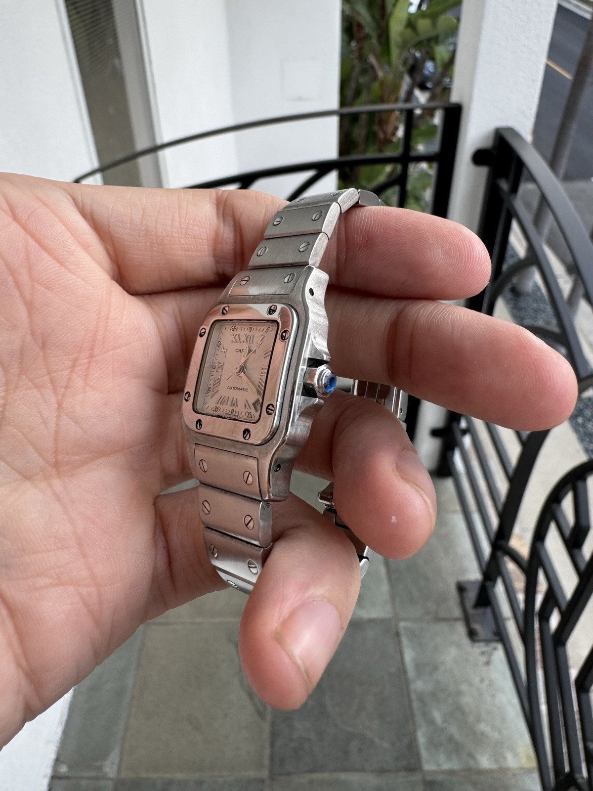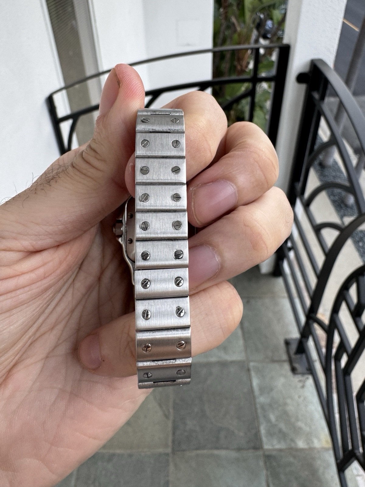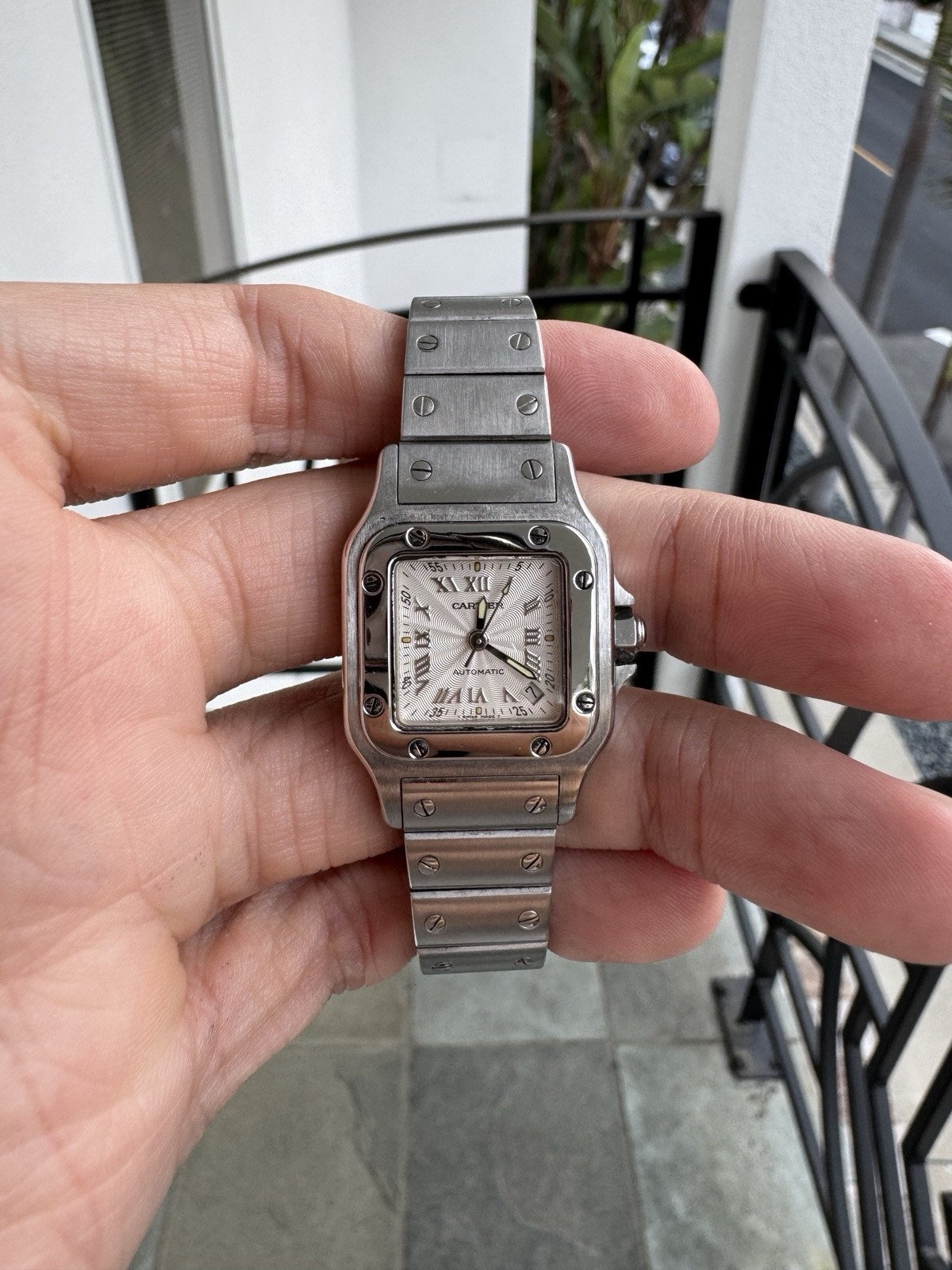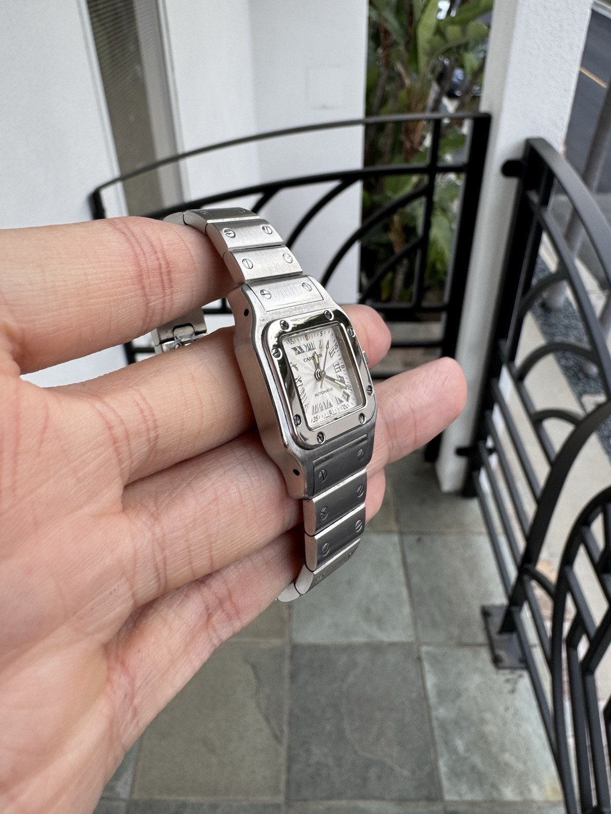 Elevate your collection with this exquisite Cartier Santos Galbee Ref. 2423. A rare find in the Santos family, this specific reference is powered by a Cartier Calibre 077 automatic movement, offering a level of mechanical sophistication rarely found in watches of this profile. The signature 24mm x 35mm curved "Galbee" case is crafted in high-grade stainless steel, designed to contour perfectly to the wrist for unparalleled comfort.