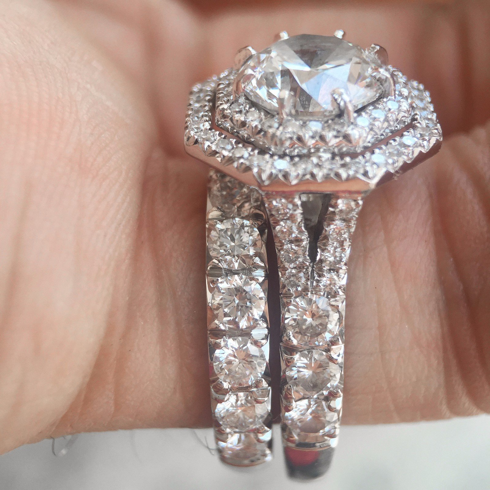 Round Diamond Pave Halo Engagement Ring White Gold – 2.5 Carat TW Can Be made with your diamond or any other diamond, price will be adjusted based on center stone. Ring may be made to order and take approx 7-10 business days. Center Stone Diamond Details :