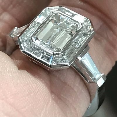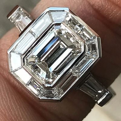 Emerald Cut Diamond Engagement With Trapezoid Halo , Vintage Look,  2.8 CTW