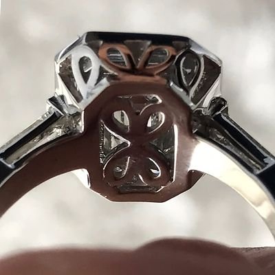 Be the first to review “Emerald Cut Diamond Engagement With Trapezoid Halo , Vintage Look, 2.8 CTW”