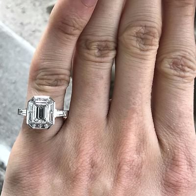 Emerald Cut Diamond Engagement With Trapezoid Halo , Vintage Look, 2.8 CTW