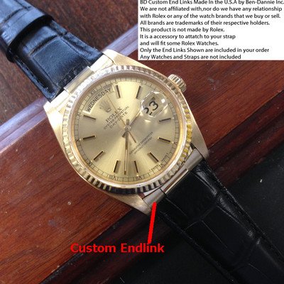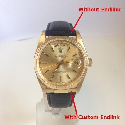 Custom made Solid 18 Yellow Gold or White Gold end links inserts for your Rolex Day Date President II watch.