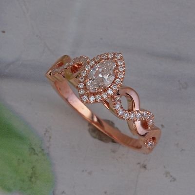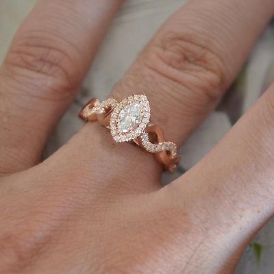 Price shown is for diamond with the ring in your size, if you want to use your own diamond or a different one to change the price please message me your budget. Marquise Diamond Halo Engagement Ring Set In Rose Gold and Diamonds Twist Shank Center Stone Diamond Details :
