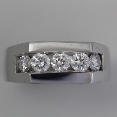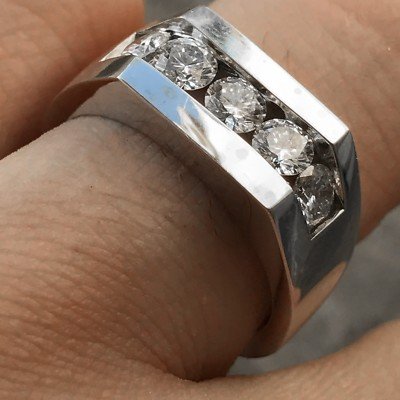 Mens Ring Round Diamonds 18k White Gold