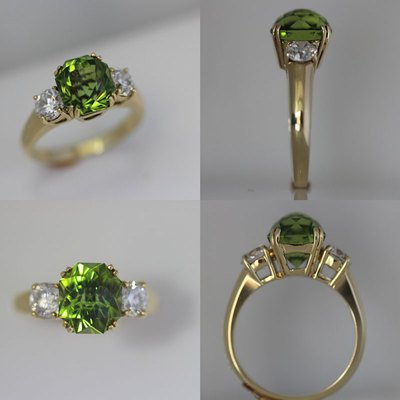 Item For Sale : 4.95 CTW + Green Peridot & Diamond Ring Set in 18k Yellow Gold