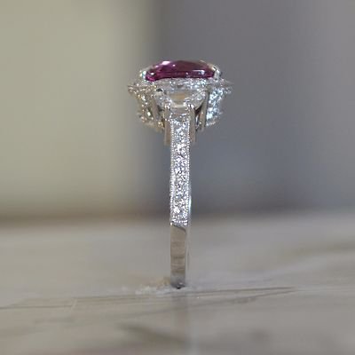 Be the first to review “Pink Sapphire & Diamond – Platinum Engagement Ring – 6.00+ Carat TW – No Heat”