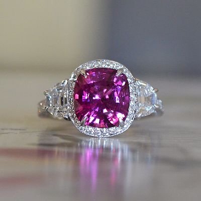 Pink Sapphire & Diamond – Platinum Engagement Ring – 6.00+ Carat TW – No Heat