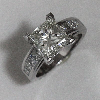 Price shown is for diamond with the ring in your size, if you want to use your own diamond or a different one to change the price please message me your budget. Princess Cut Diamond Engagement Ring – 3.00 + Carat TW – 18k White Gold Center Stone Diamond Details :
