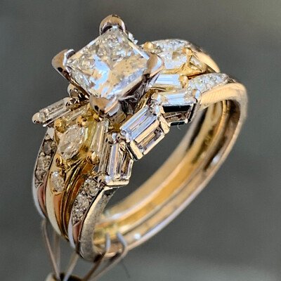 Princess Cut Diamond Engagement Ring W/ Matching Bands, 14 Karat Gold,Ben Dannie