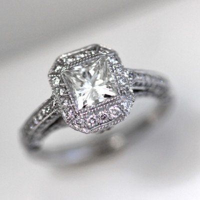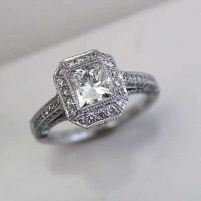 1.62 CTW Diamond and Platinum Engagement Ring – Nice Princess Cut Diamond