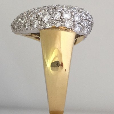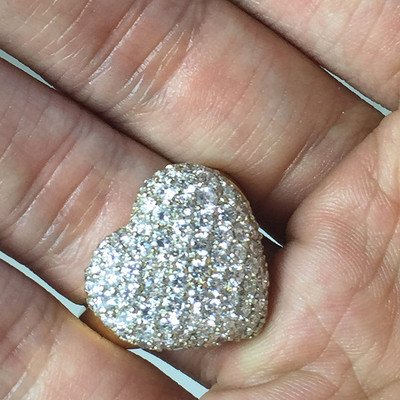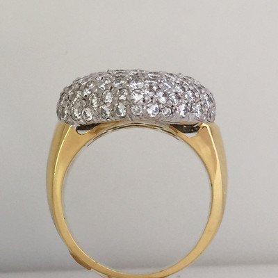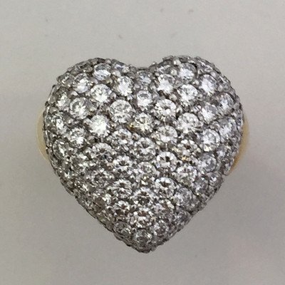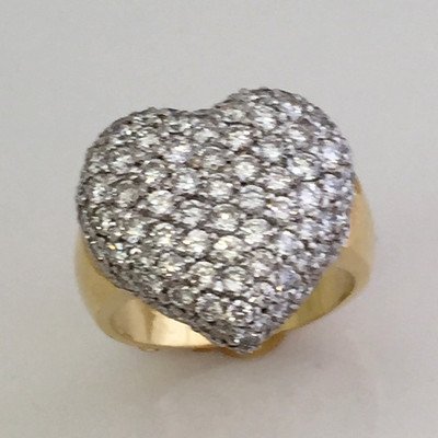 Puffed pave heart ring; pillow whispers collection, diamond total carat weight 3.17, color grade G-H, clarity grade VS-SI, eighteen karat gold – yellow and white. Style number B4462001 |