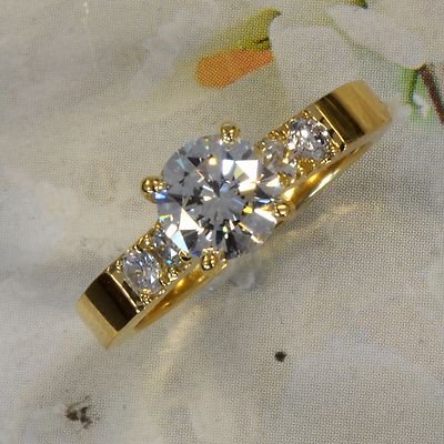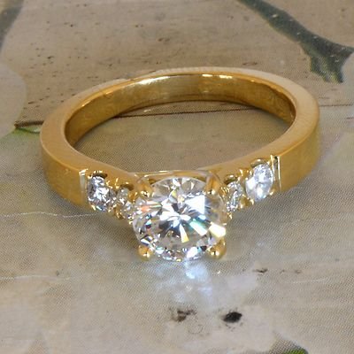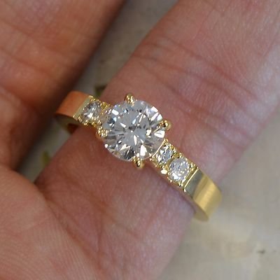 Round Diamond 18k Yellow Engagement Ring 1.00 Carat Center with side diamonds