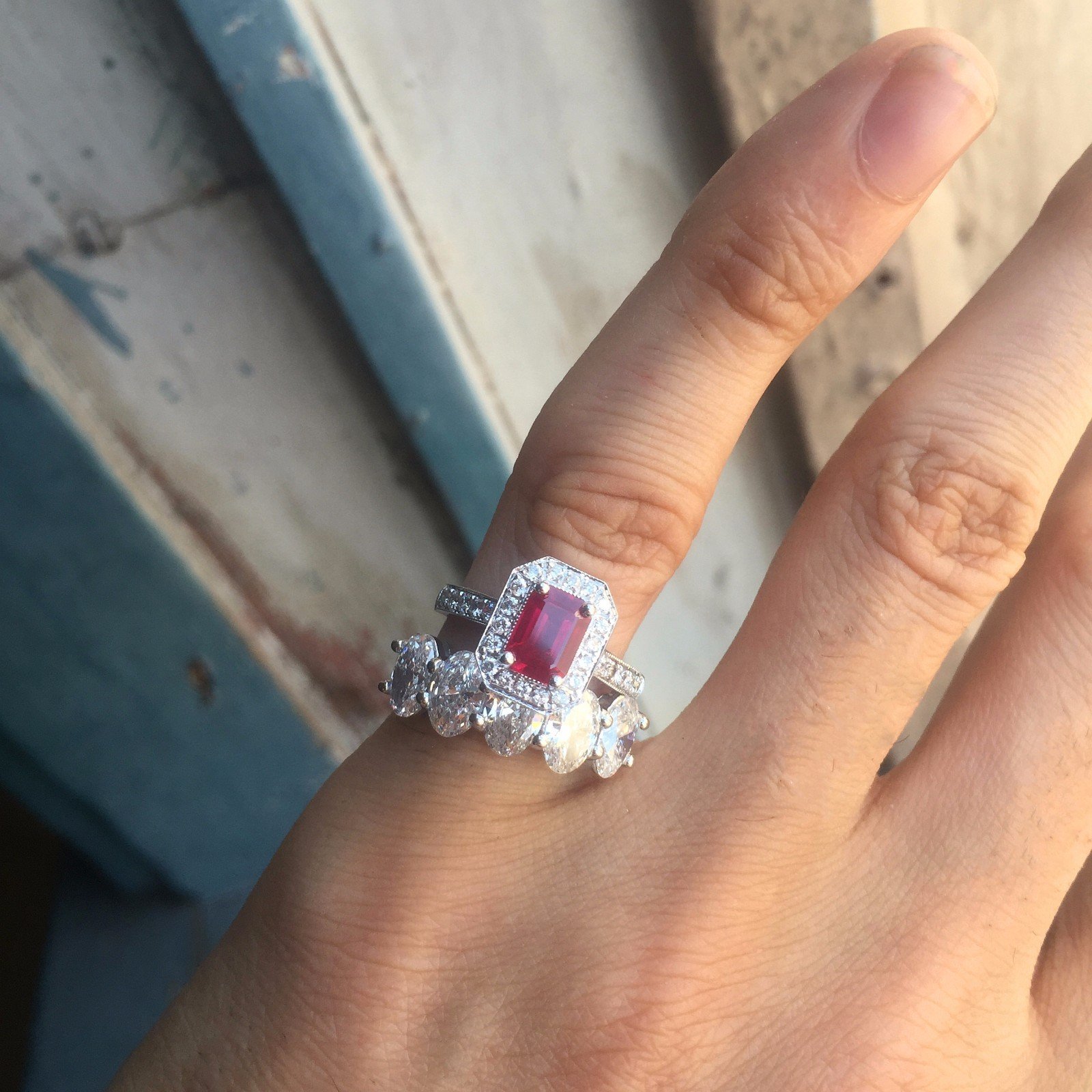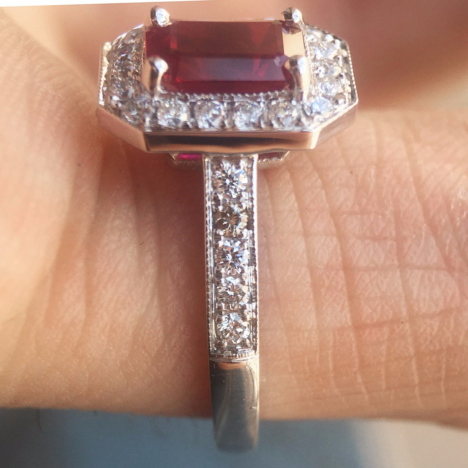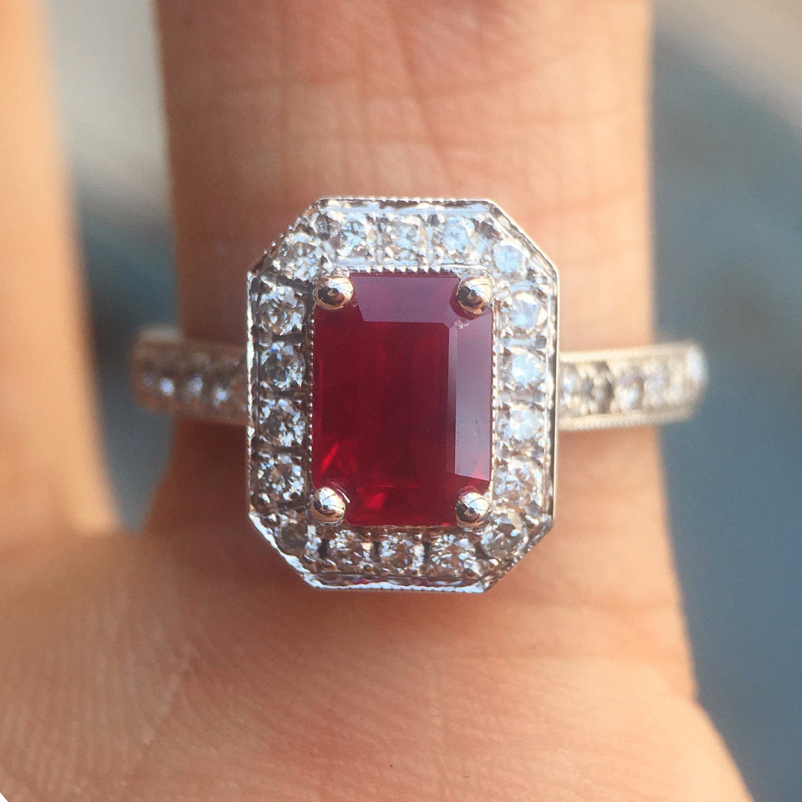 Ruby Gemstone With Diamond Halo Engagement / Fashion Ring – 2 Carats Total