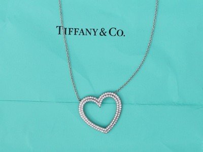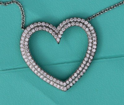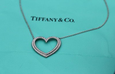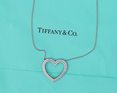 TIFFANY & CO. 18K White Gold LADIES METRO HEART DIAMOND NECKLACE