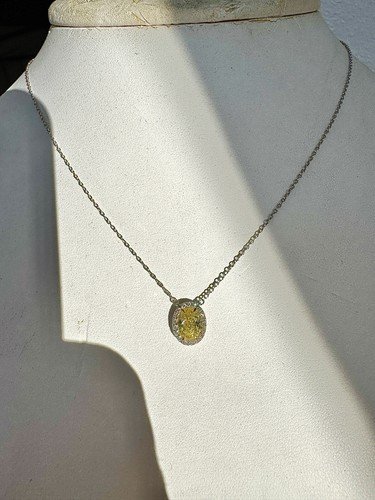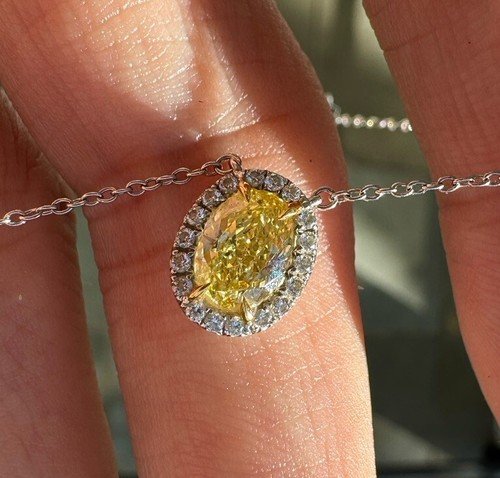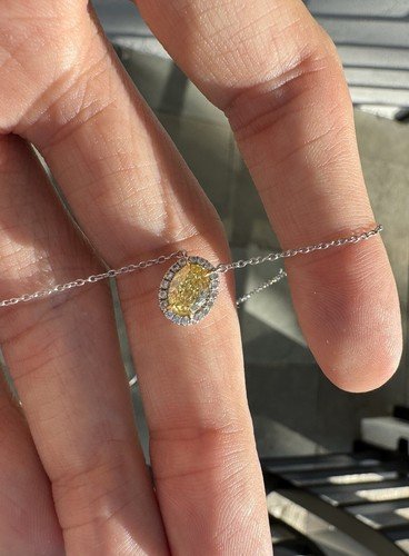 Tiffany & Co Fancy Intense Yellow Diamond Oval 18k W & Platinum Necklace 1.02 CT