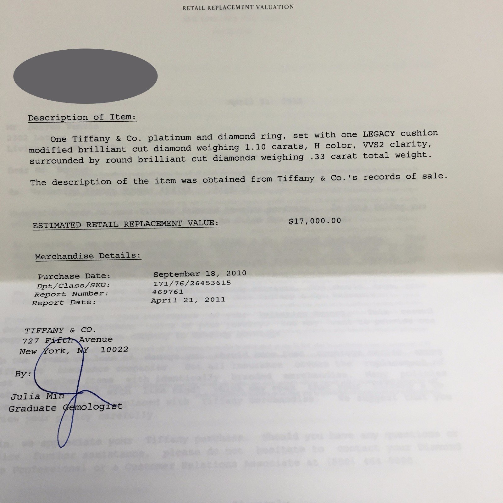 Our GIA Gradutate Gemologist certified Replacement Appraisal