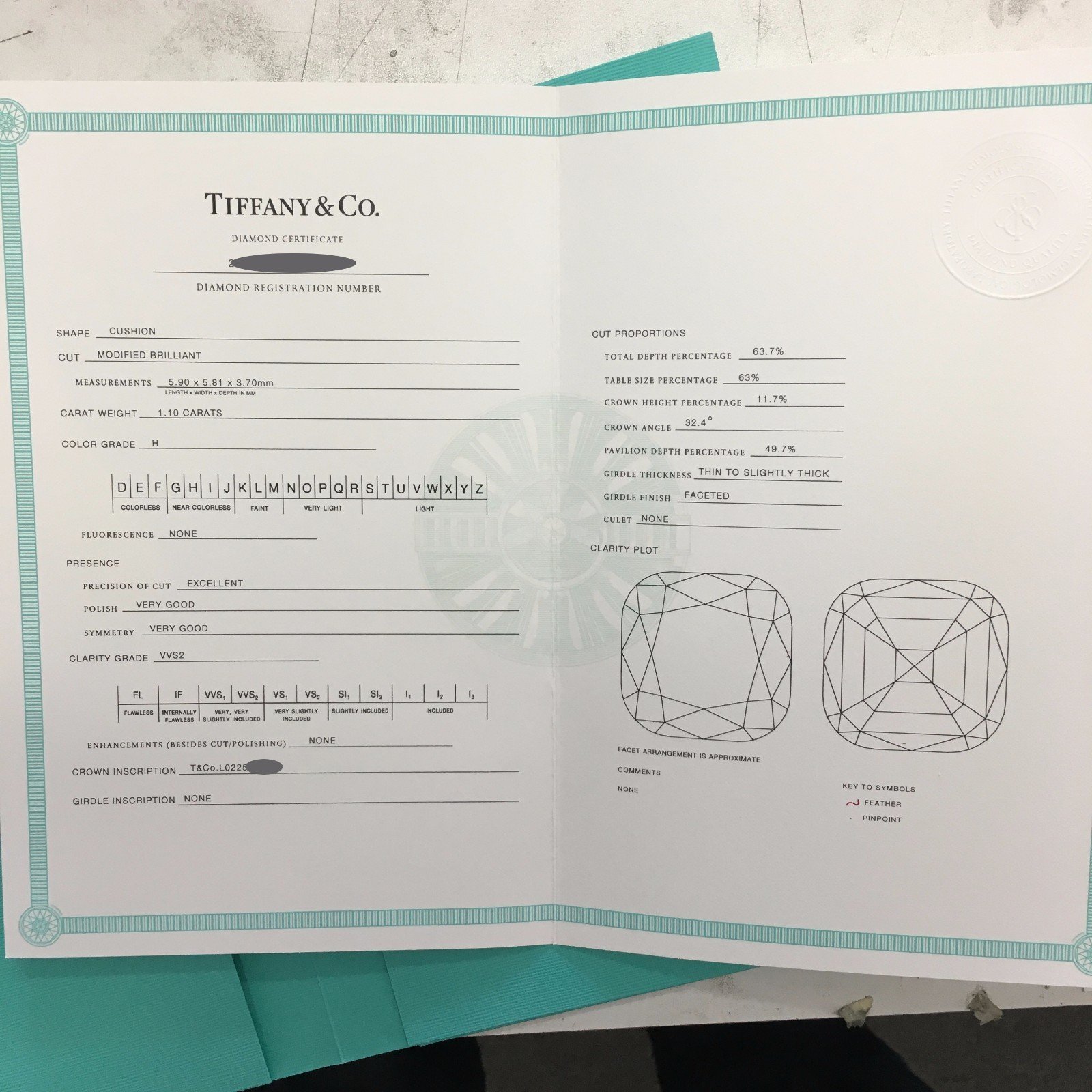 Tiffany & Co. Legacy Cushion Diamond Engagement Ring 1.43 CTW – H VVS2 -Platinum