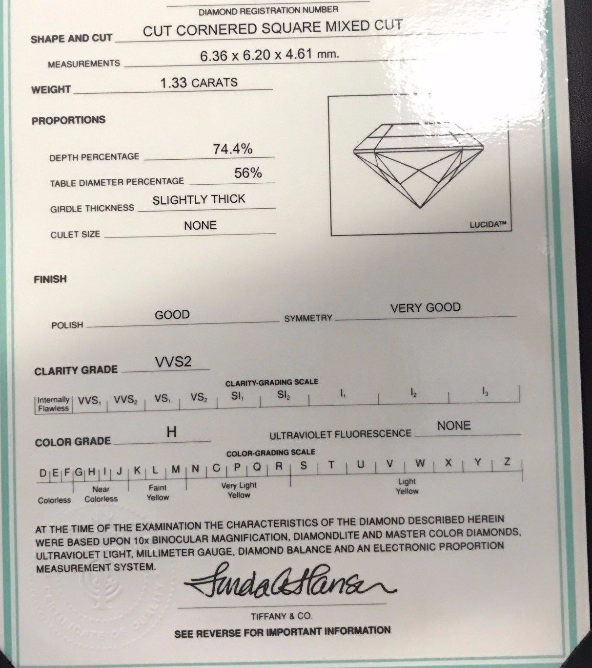 Tiffany & Co. Legacy Cushion Diamond Engagement Ring 1.43 CTW – H VVS2 -Platinum