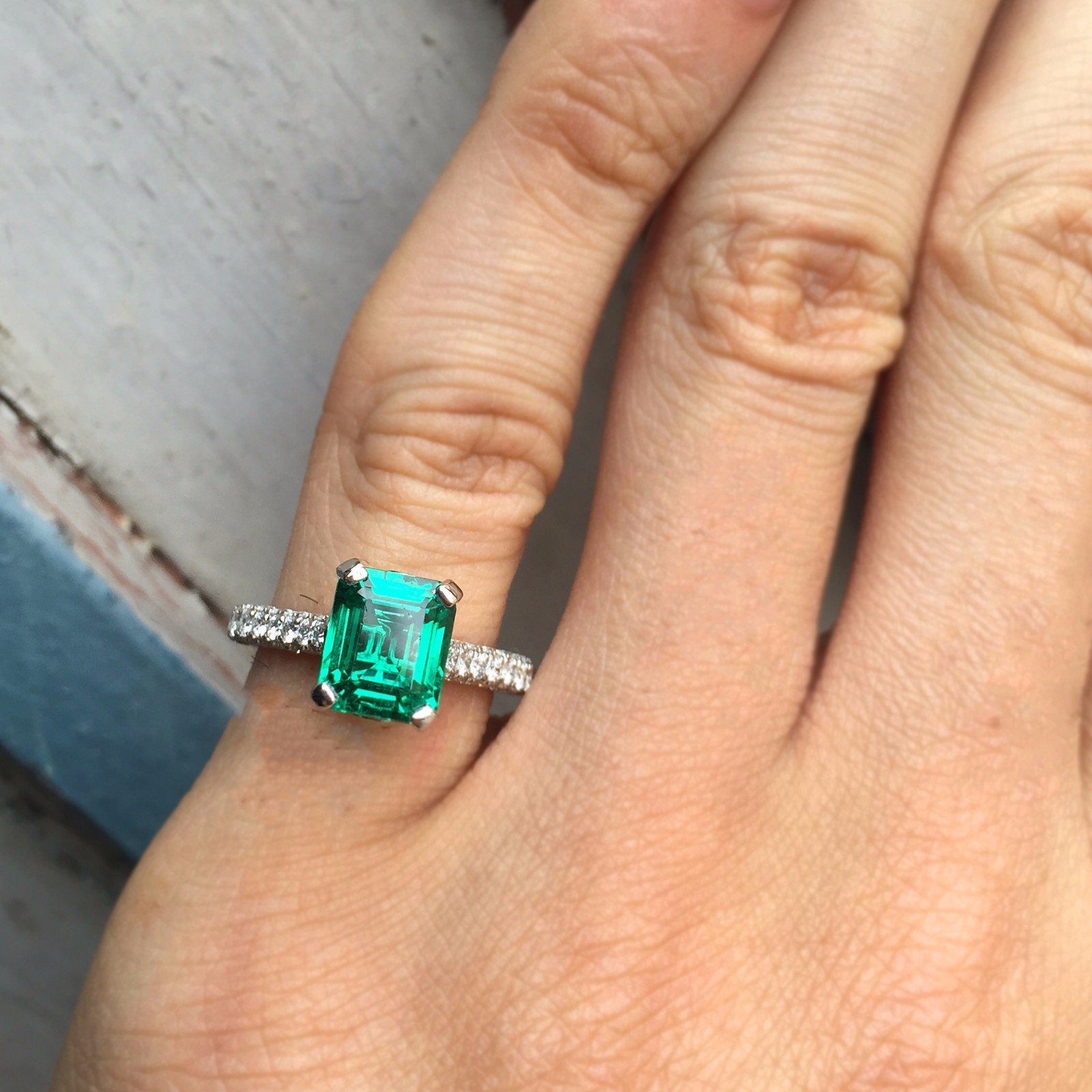 Be the first to review “Vivid Green Emerald With Pave Diamond Down Shank – 3 Carat + TW – Platinum”
