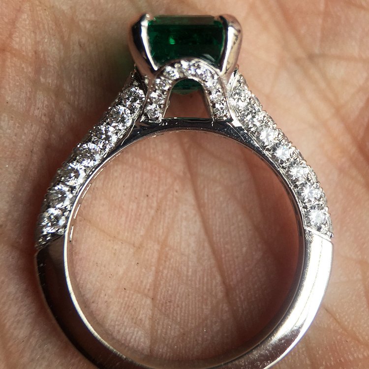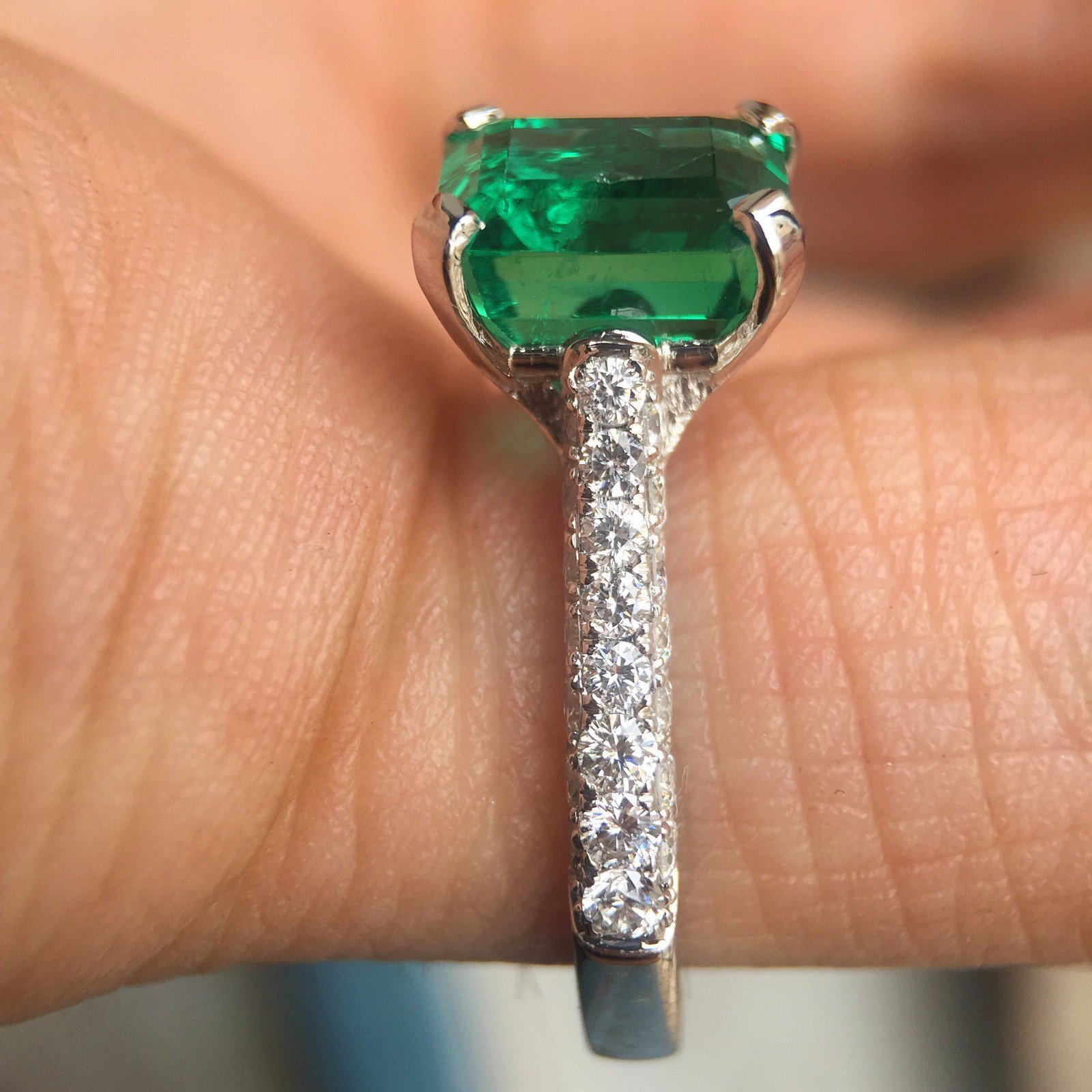 Vivid Green Emerald With Pave Diamond Down Shank – 3 Carat + TW – Platinum