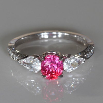 Be the first to review “Vivid Pink Sapphire 1.00 Carat Three Stone Ring 18k White”